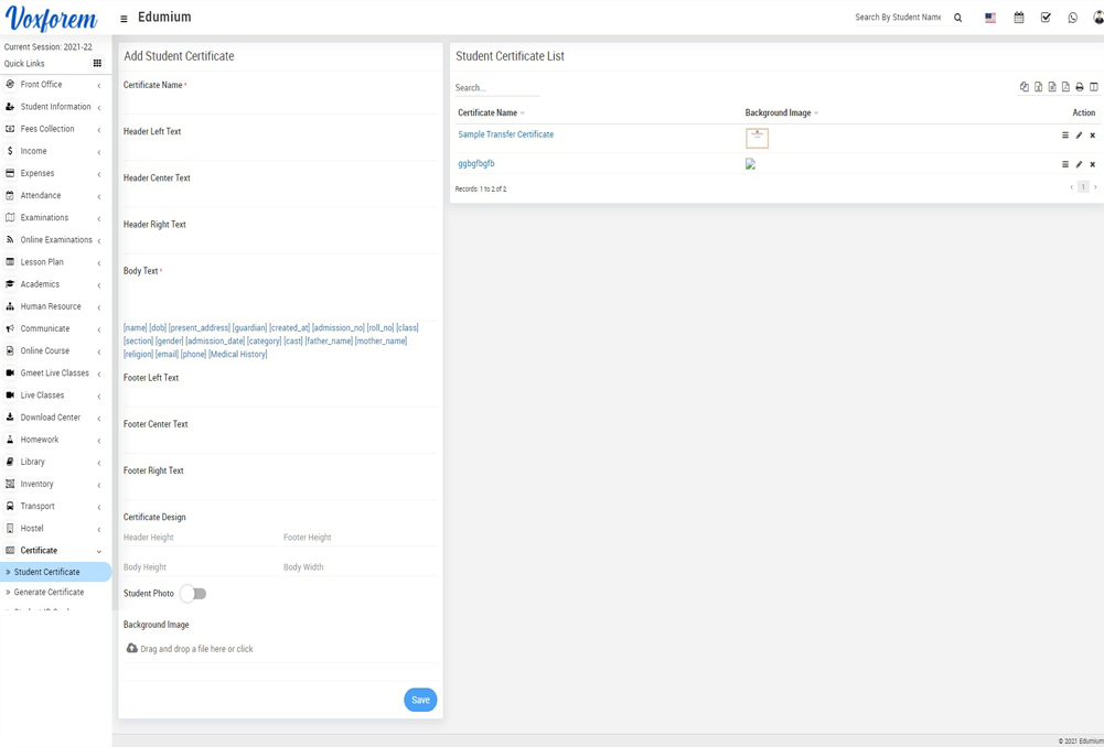 certificate module workflow- First of all, we will send the message or email by notice board and then the sent message can be checked on the notice board or Email/ SMS log.