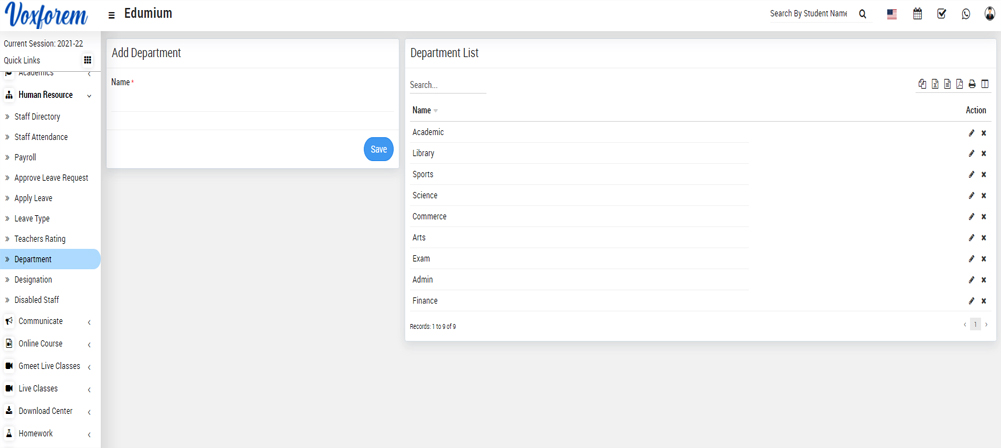 Human Resource module workflow: First, we will add Department, Designation, Leave Type then we will add staff member from Staff Directory, day by day Staff Attendance, and Payroll, Apply for Leave, Approve Leave Request, Teacher Rating, Disabled Staff. If you want to add additional fields in staff form then you can use the Custom Fields feature for this go to System Settings > Custom Fields and add your desired fields in Staff. If you also don't want any default fields in staff then you can disable it from System Settings > System Fields and disable staff system fields. You can also check staff attendance and payroll report and students can also give ratings for teachers.